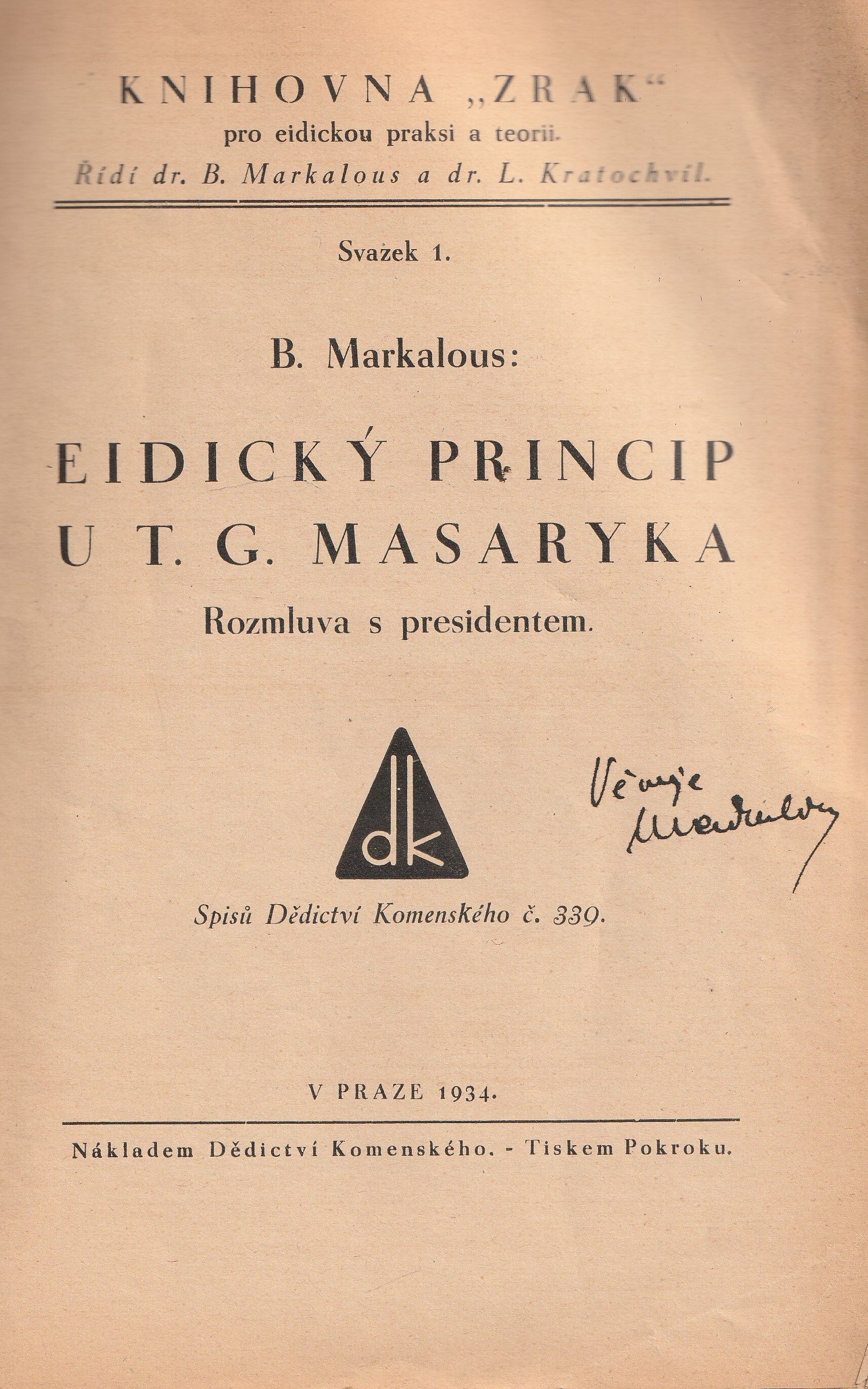 Eidický princip u T.G. Masaryka - rozmluva s presidentem | Knihy s podpisem autora | 300 Kč | Koupit | |