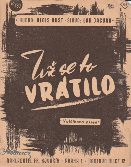 Už se to vrátilo | Hudebniny - noty: písně dvojlisty Kovařík | 20 Kč | Koupit | |