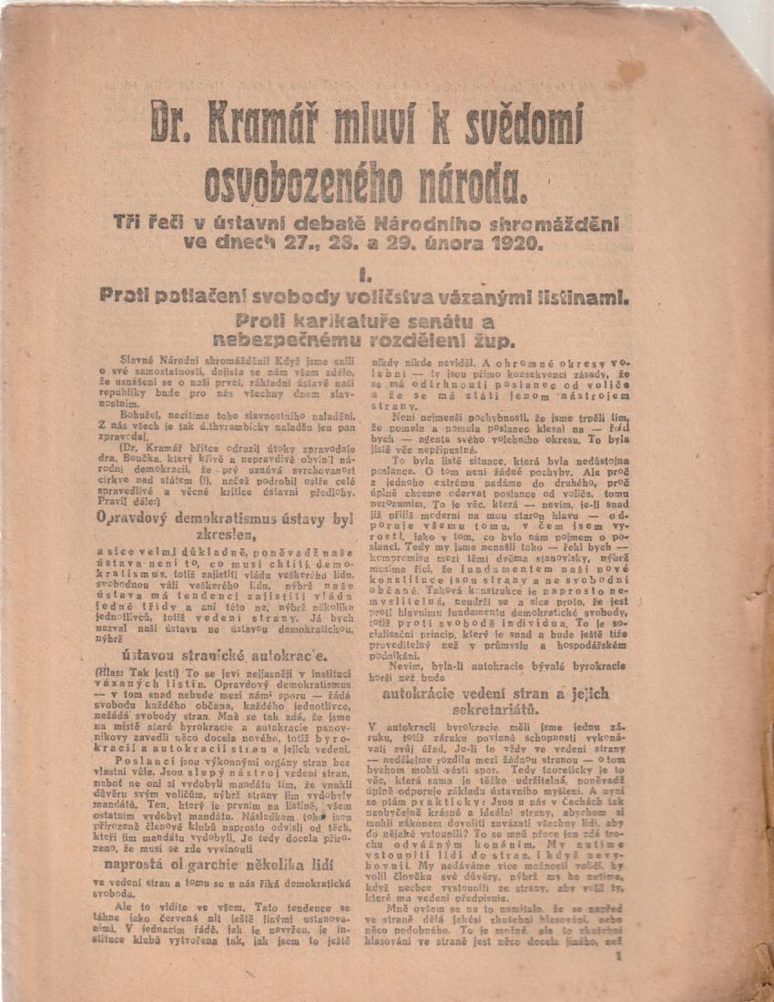 Dr. Kramář promluví k svědomí osvobozeného národa |