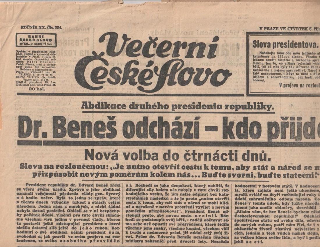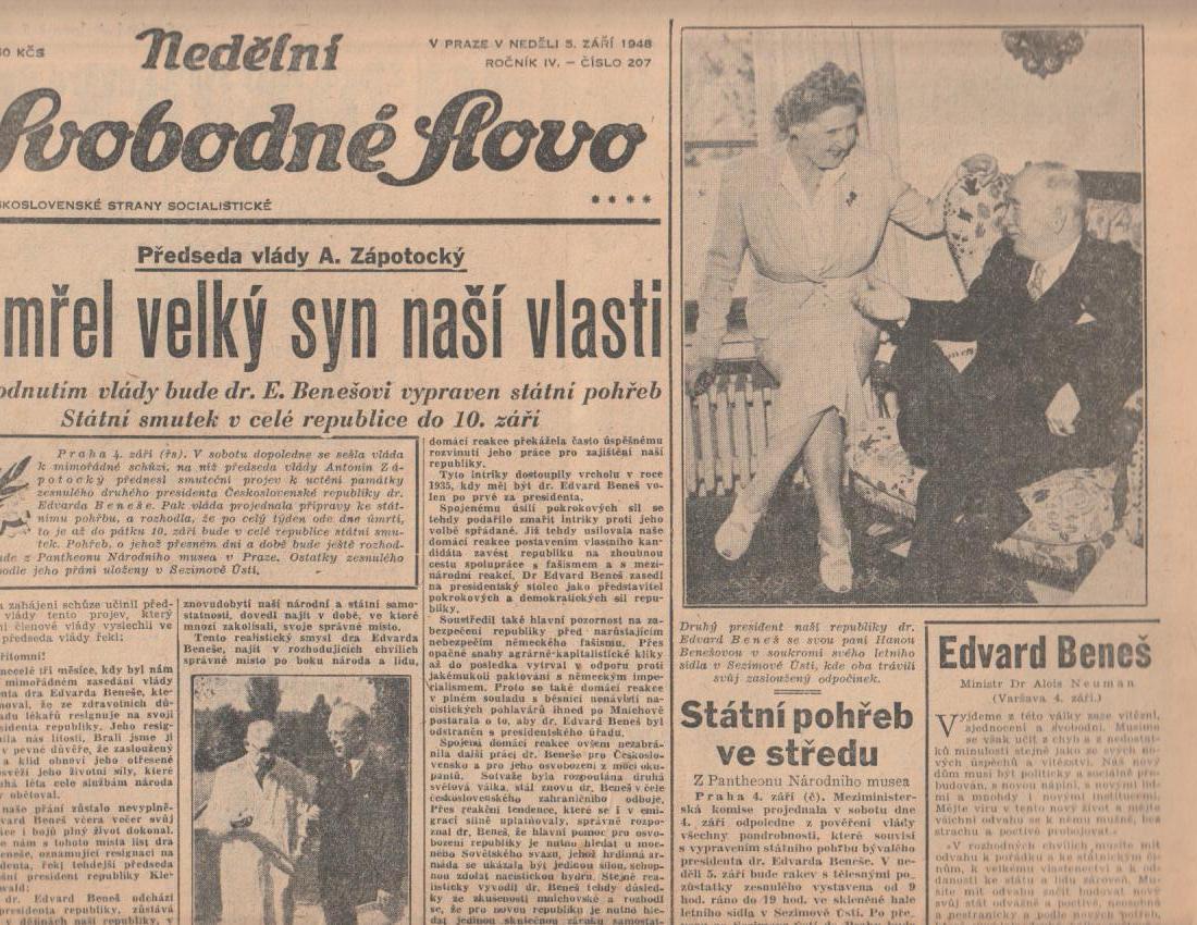 | Pozn.: | přeloženo, smrt Edvarda Beneše |