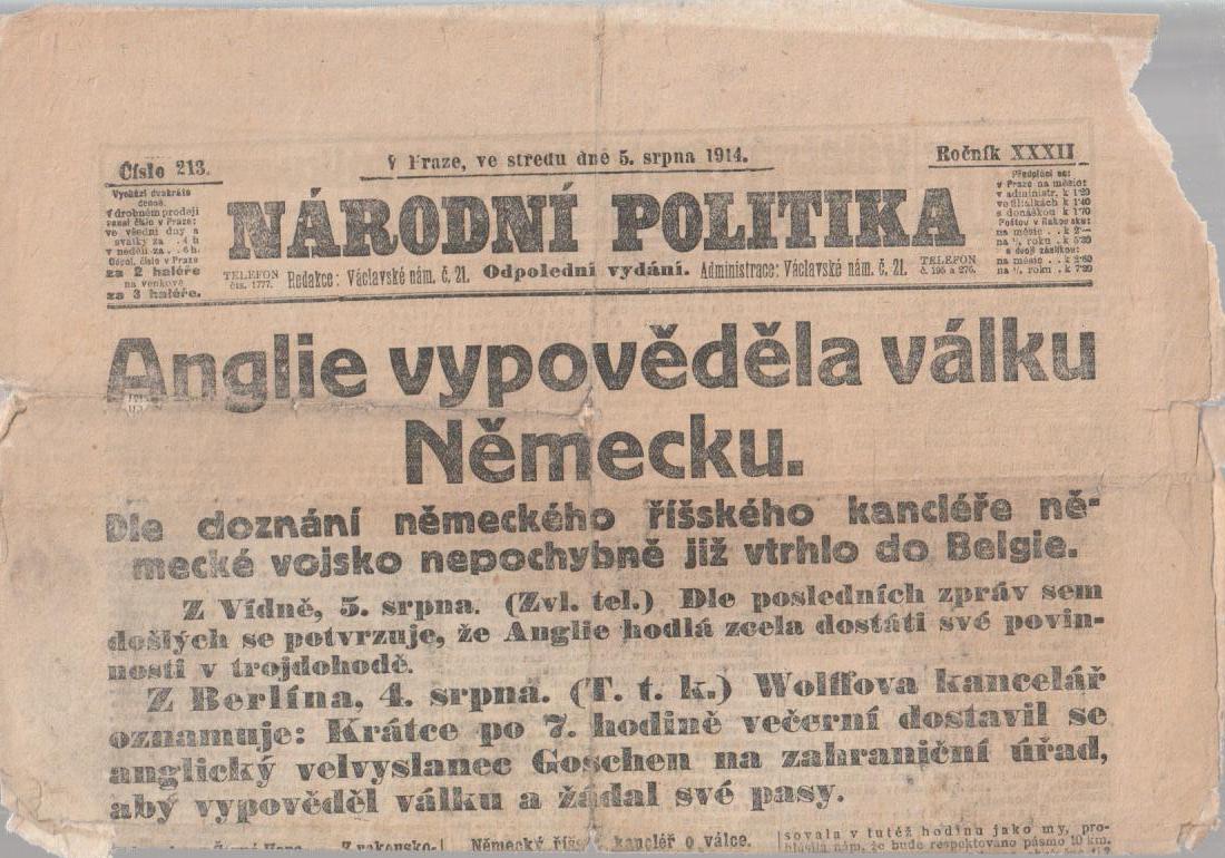 Národní politika 5. 8. 1914, odpolední vydání |
