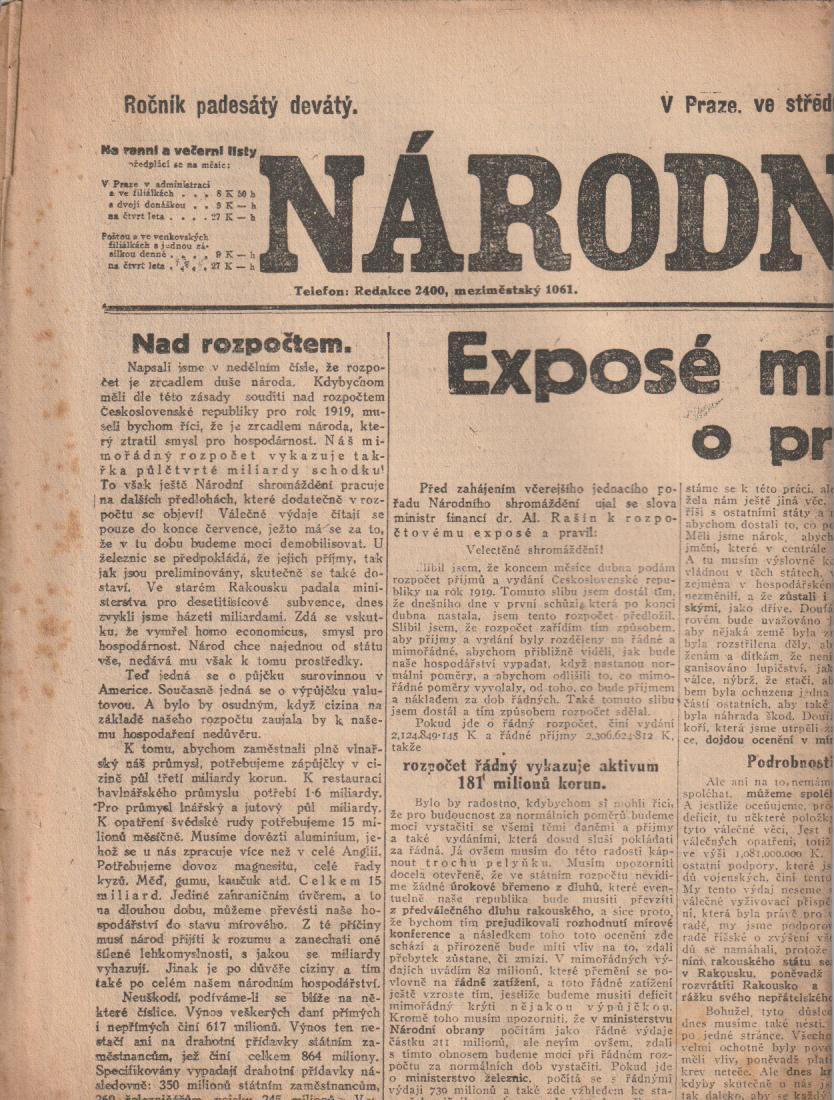 Národní listy 6. 5. 1919 |