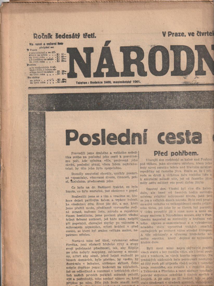 | Pozn.: | přeloženo, smrt Aloise Rašína |