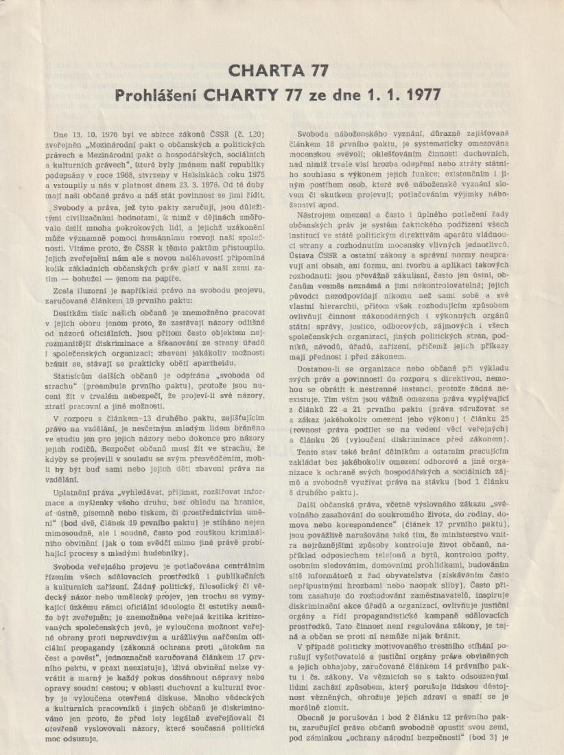 Leták stávkujících studentů pedagogické fakulty UK: Charta 77 |