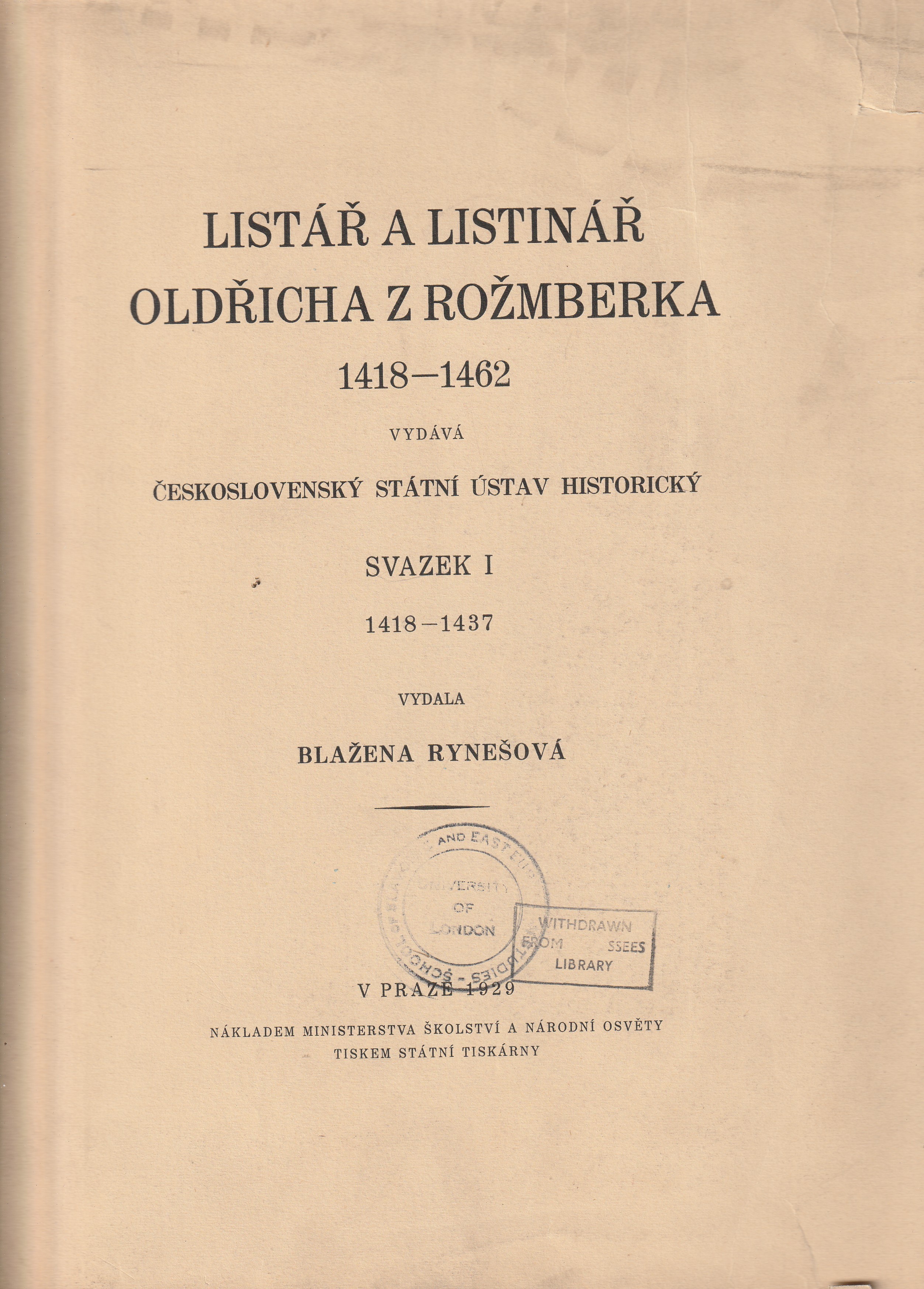 Listář a listinář Oldřicha z Rožmberka sv.I., 1418-1437 |