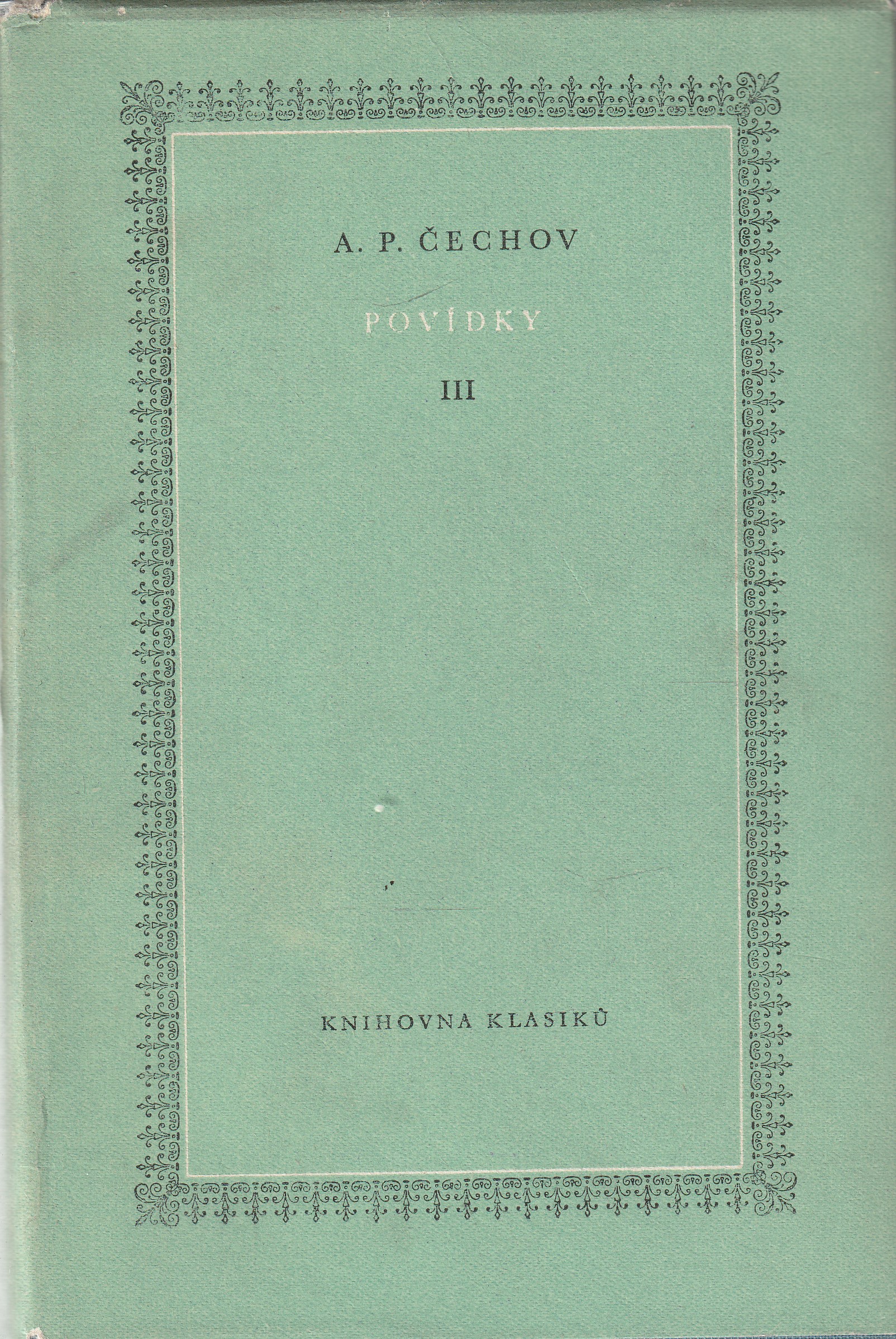 | Pozn.: | váz., ob. není, razítka, nesouvisející věnování, Knihovna klasiků, spisy A. P. Čechova sv. 2 |