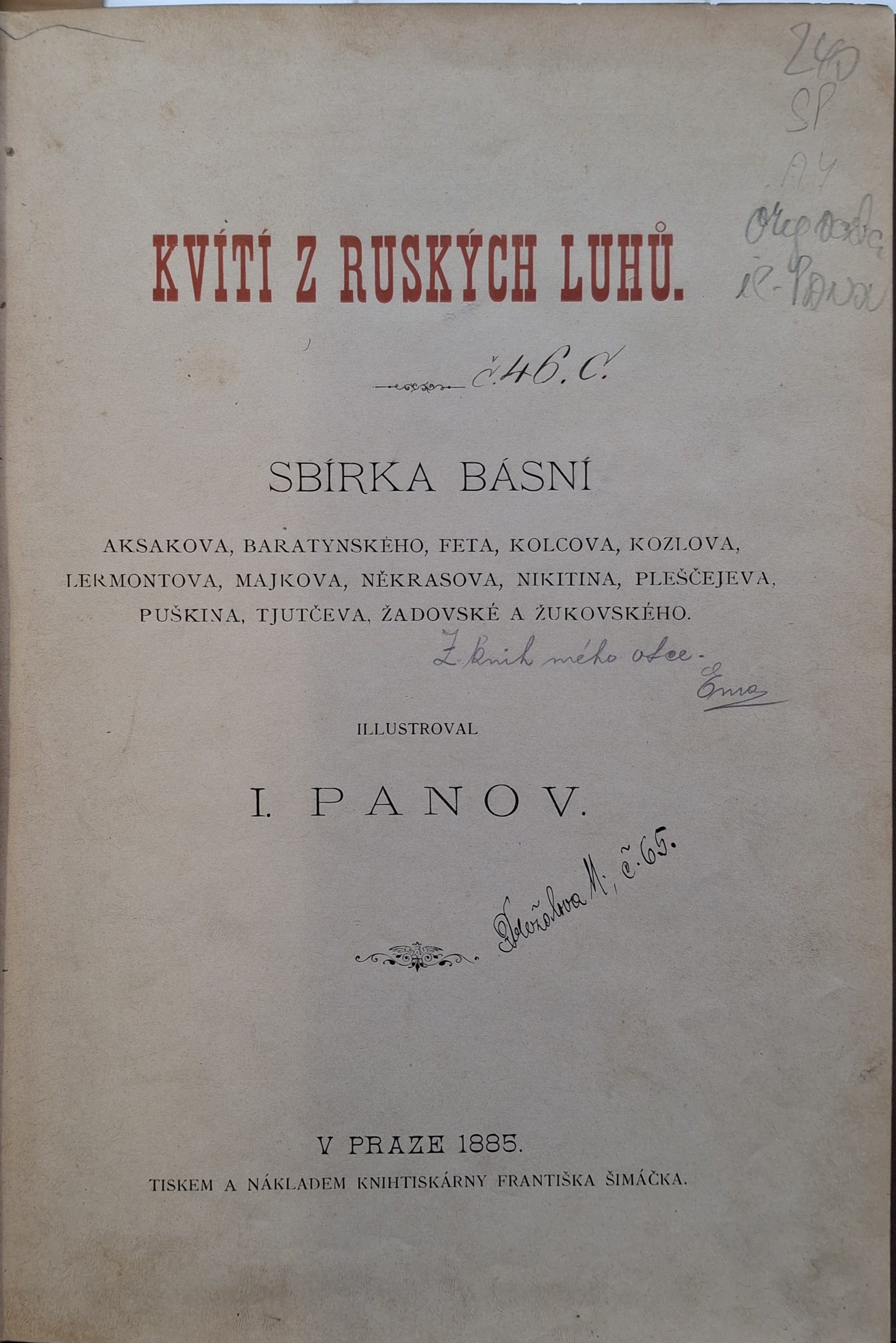 | Pozn.: | Plamen sv. 65, vlepeno obrácěně, přeložil Zábrana |
