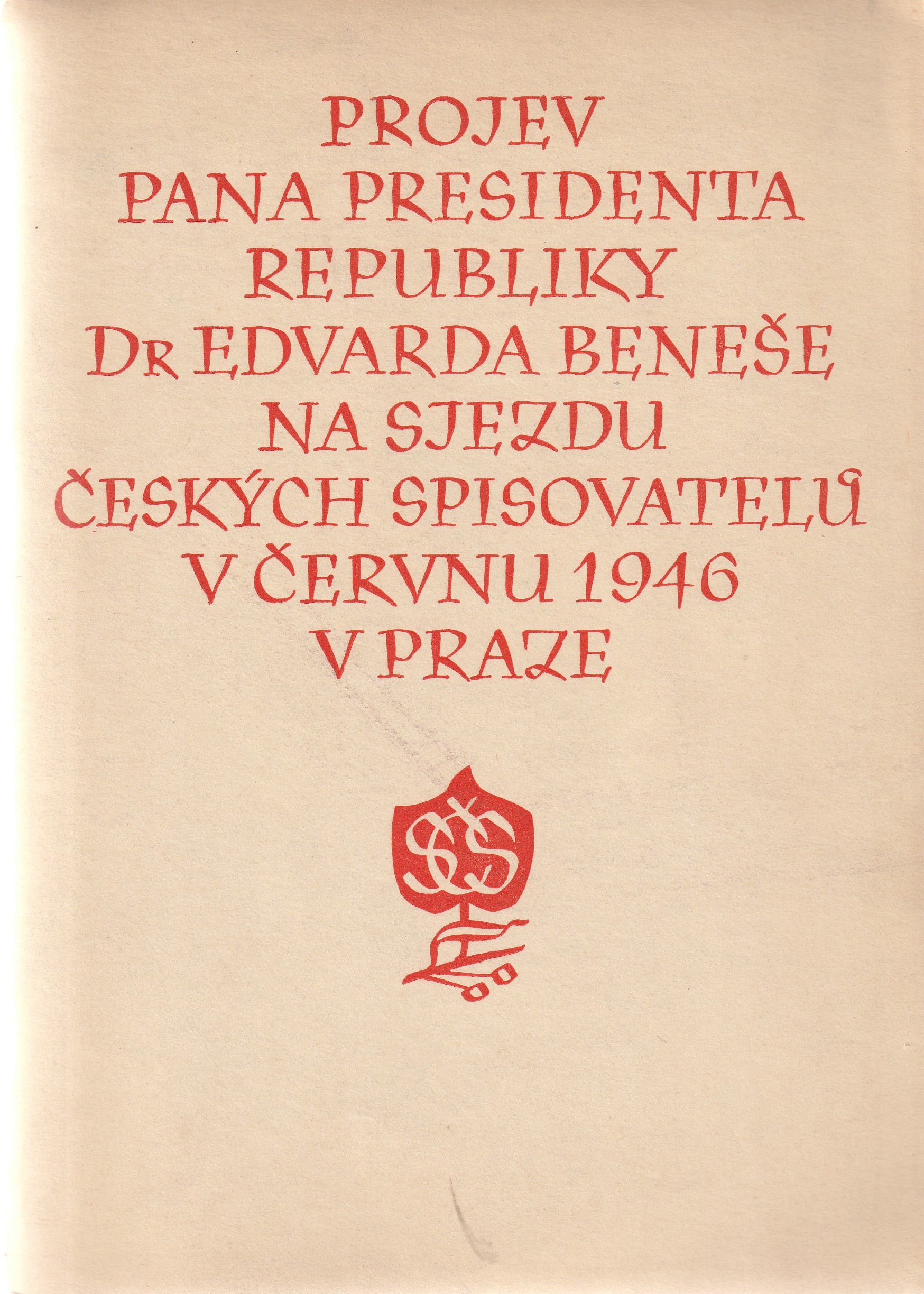 Projev pana presidenta rep. dr. E.B. na sjezdu českých spisovatelů 1946 |