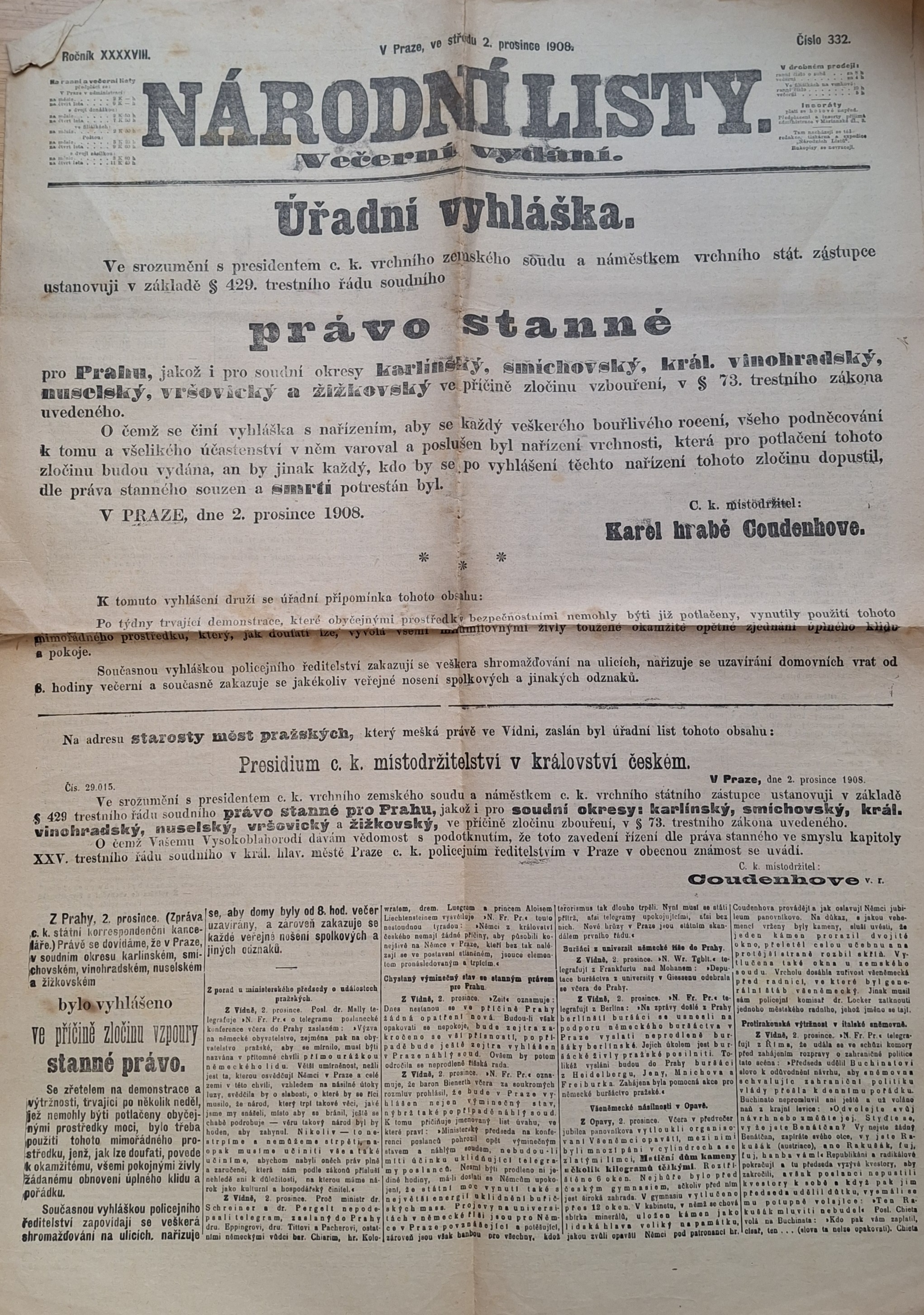 Národní listy 2.12.1908 večerní vyd. |
