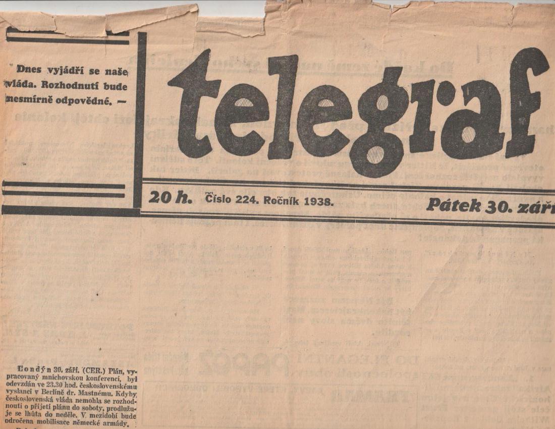 Národní listy 6. 10. 1938 - jen titulní list |