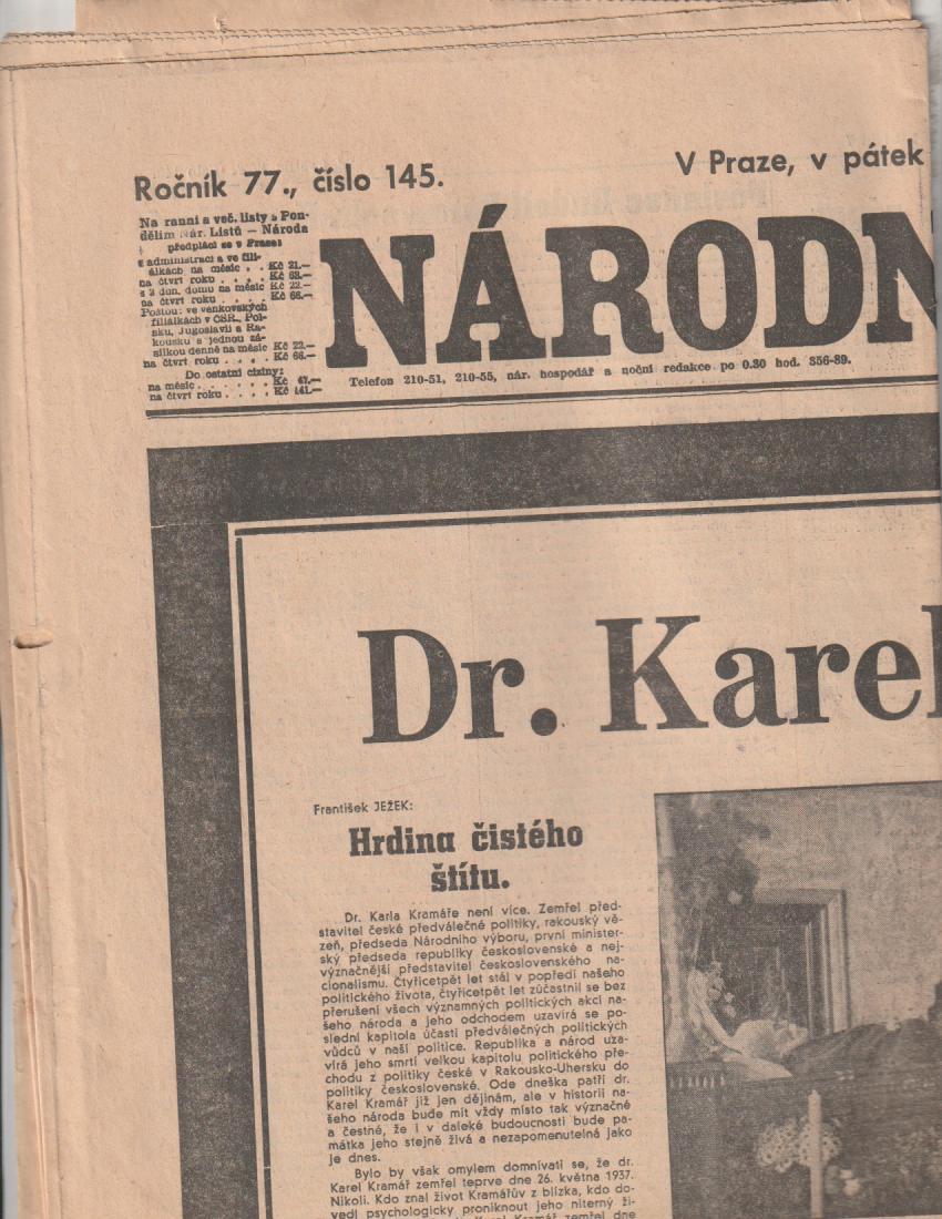 | Pozn.: | přeloženo, vč. 4 příloh: Z minulosti Národních Listů (I.), Jak nás mají rádi, Z minulosti Národních Listů (II.), Národní a obranná práce" |