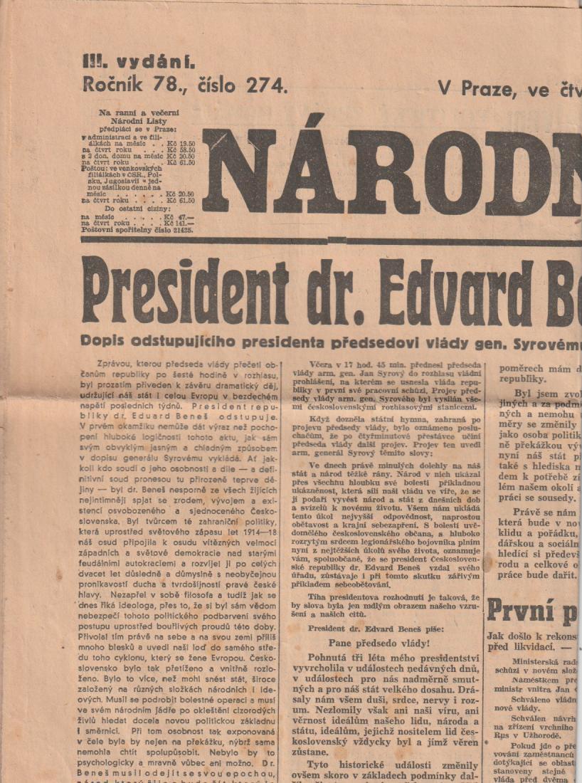 | Pozn.: | přeložené, Edvard Beneš odstoupil |