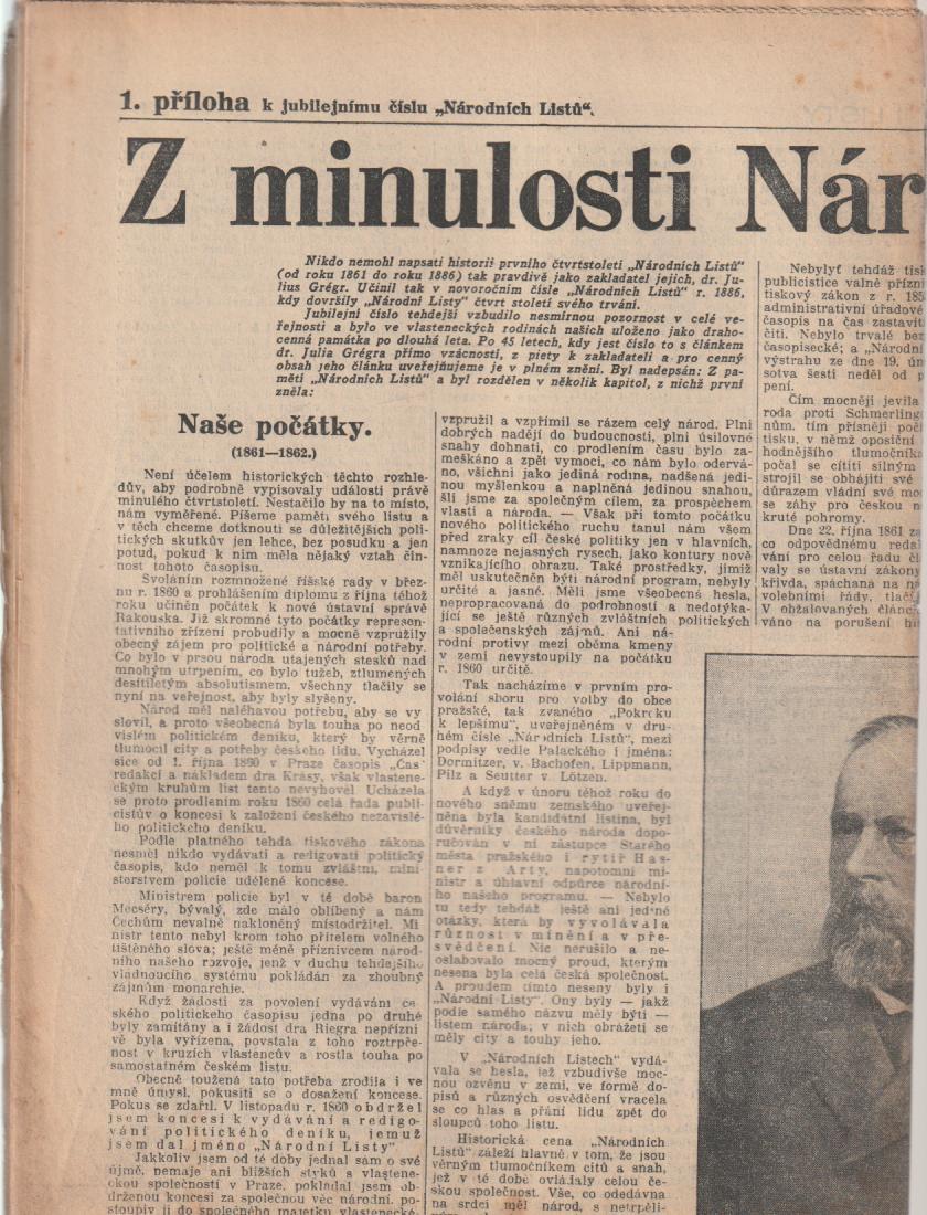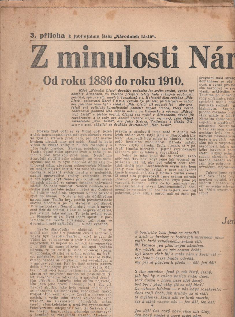 Z minulosti Národních Listů (I.) (příloha k jubilejnímu číslu Národních listů) |