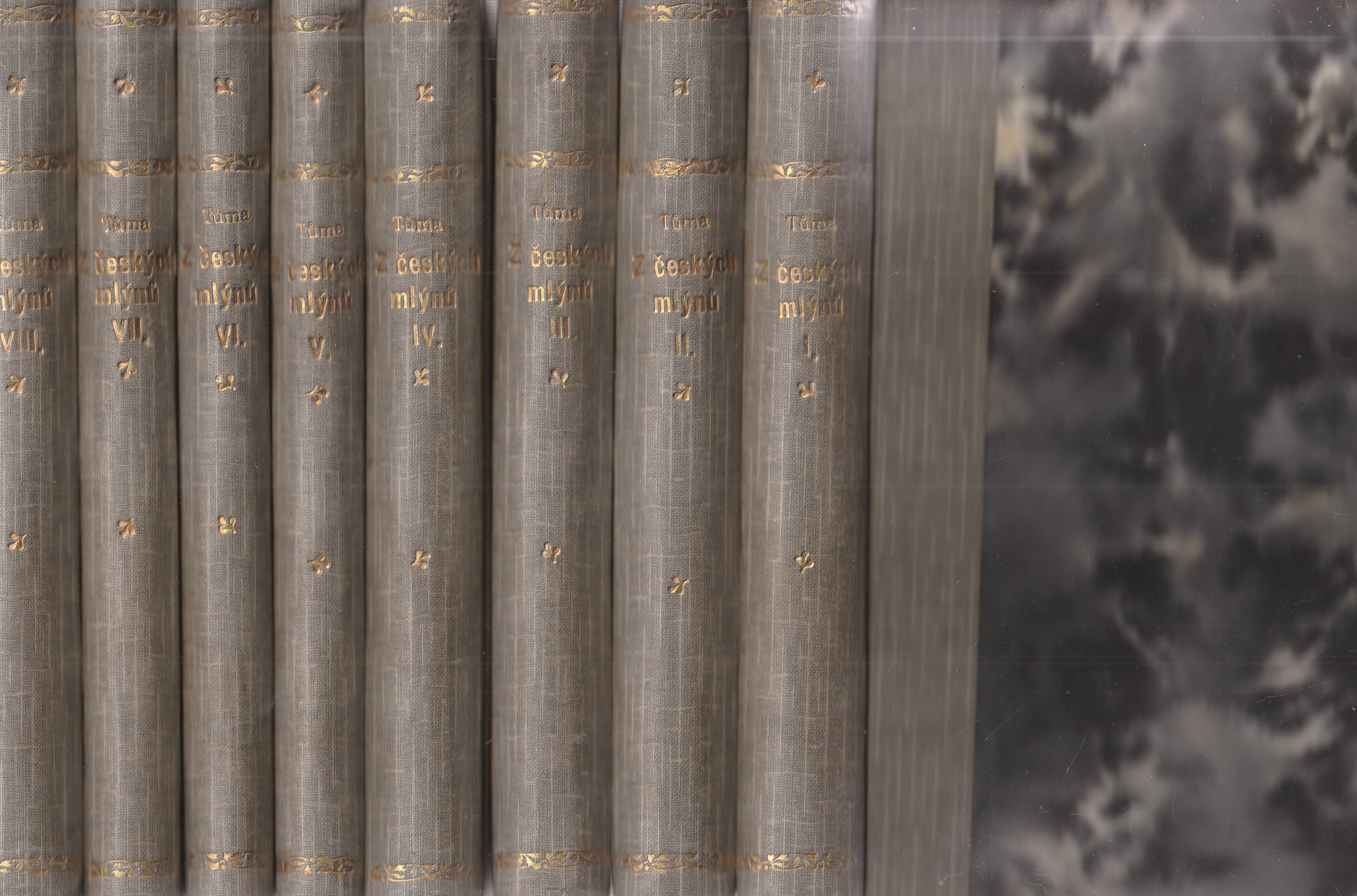 | Pozn.: | komplet 8 sv. váz. , 1. díl roztrž. hřbet, ostatní OK |