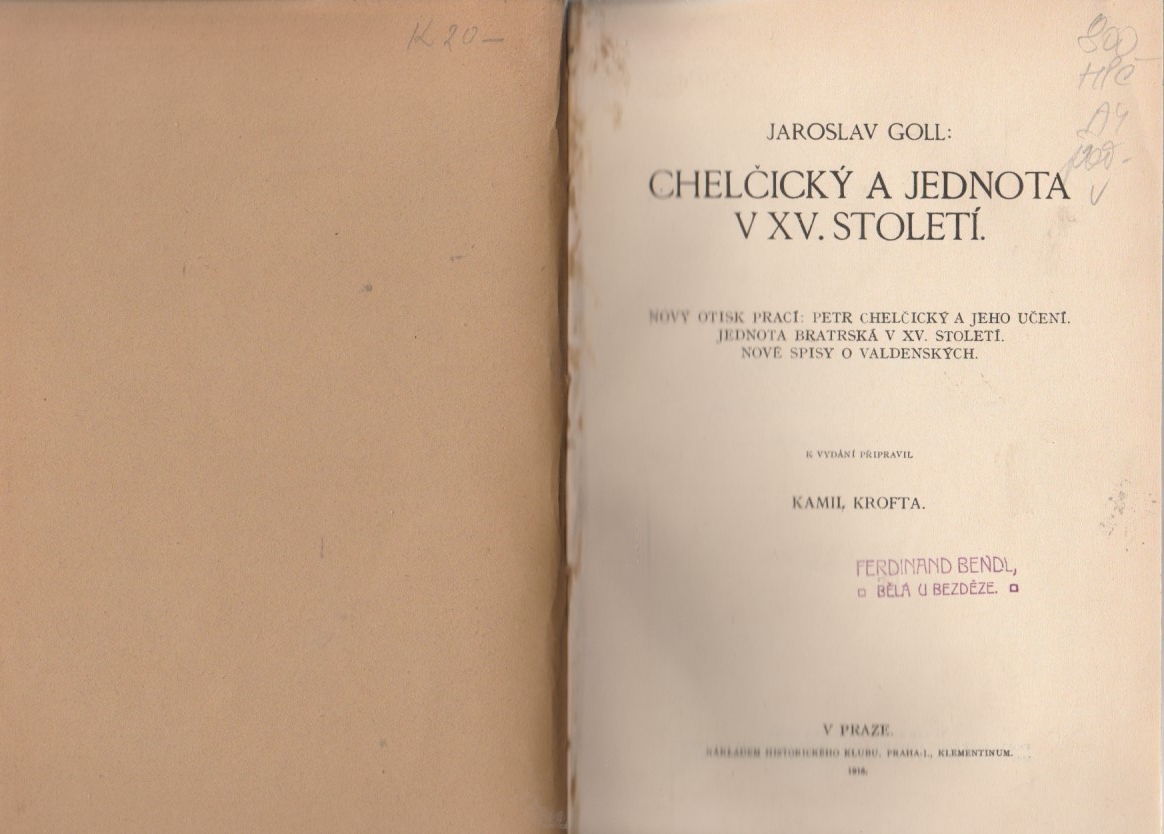Chelčický a Jednota v XV. st. |