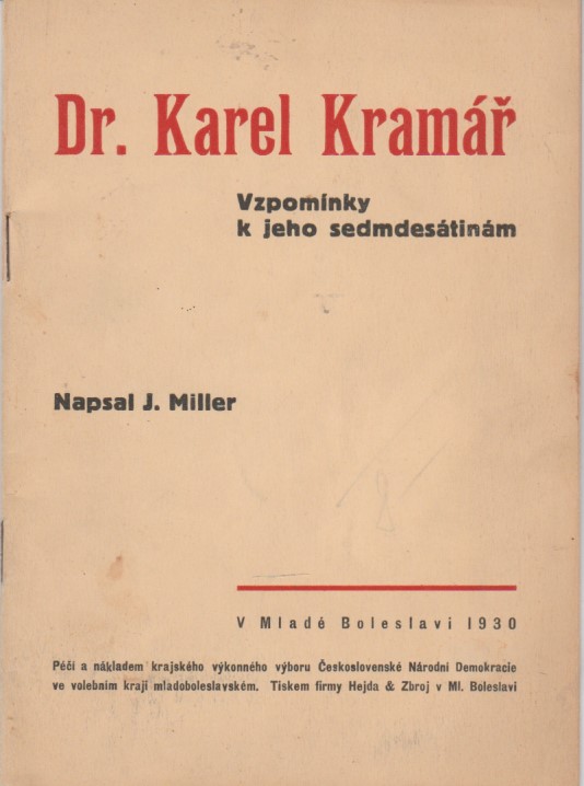 Dr. Karel Kramář - vzpomínky k jeho sedmdesátinám |