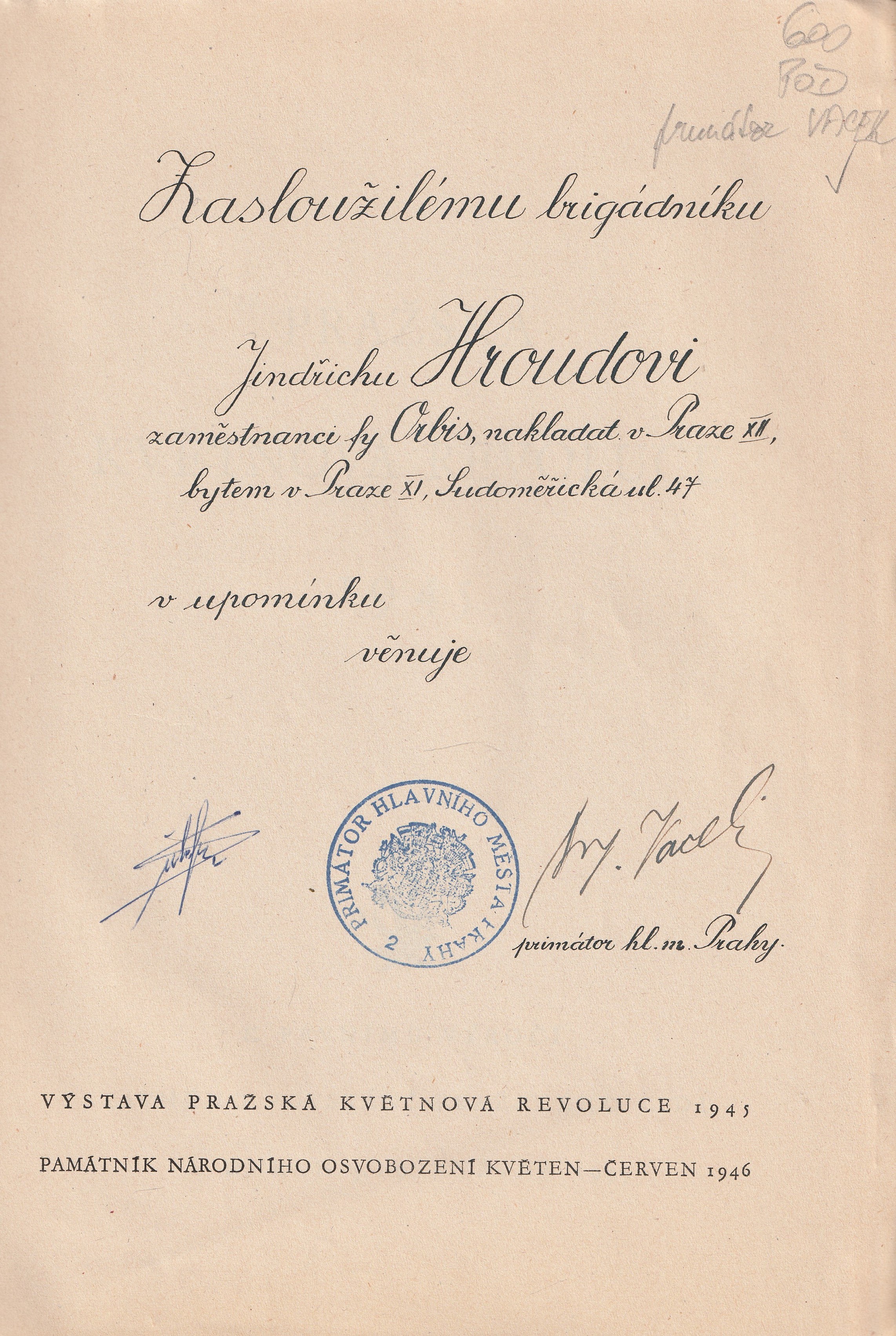 | Pozn.: | A 4, brož., primátor Vacek |