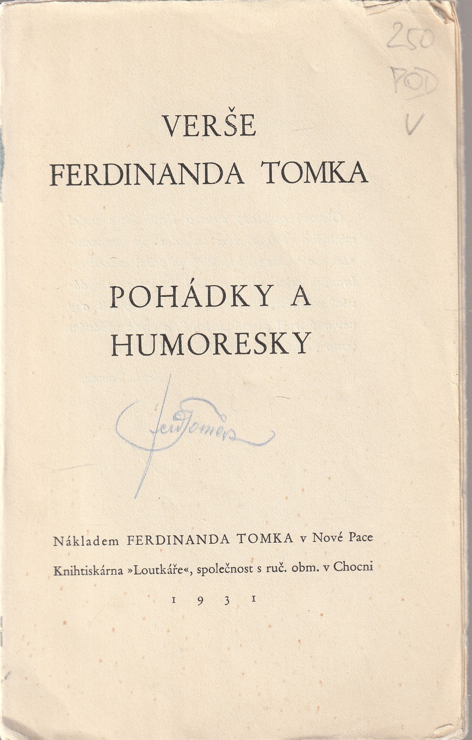 | Pozn.: | váz., věnování autora, ušpiň. před. deska |