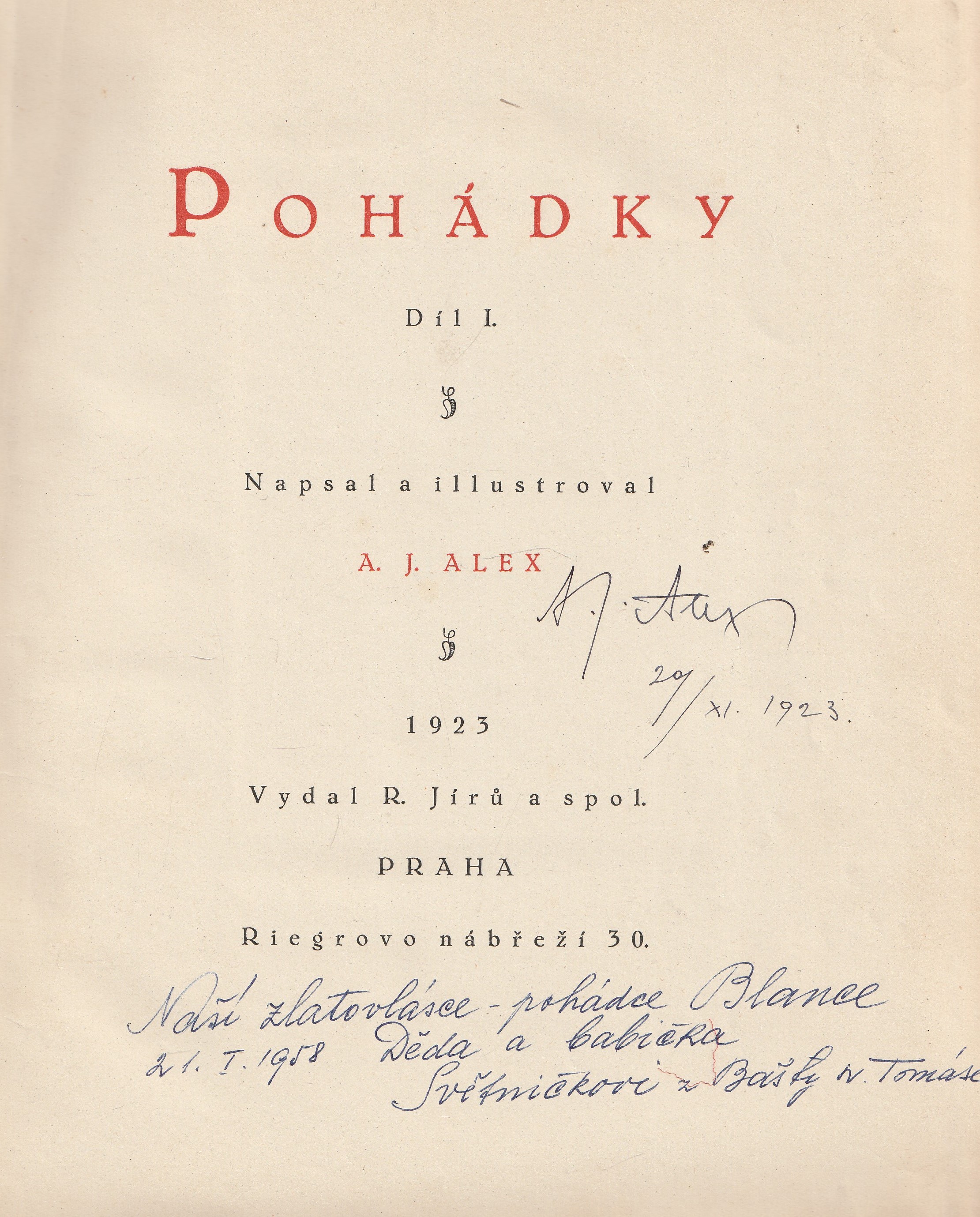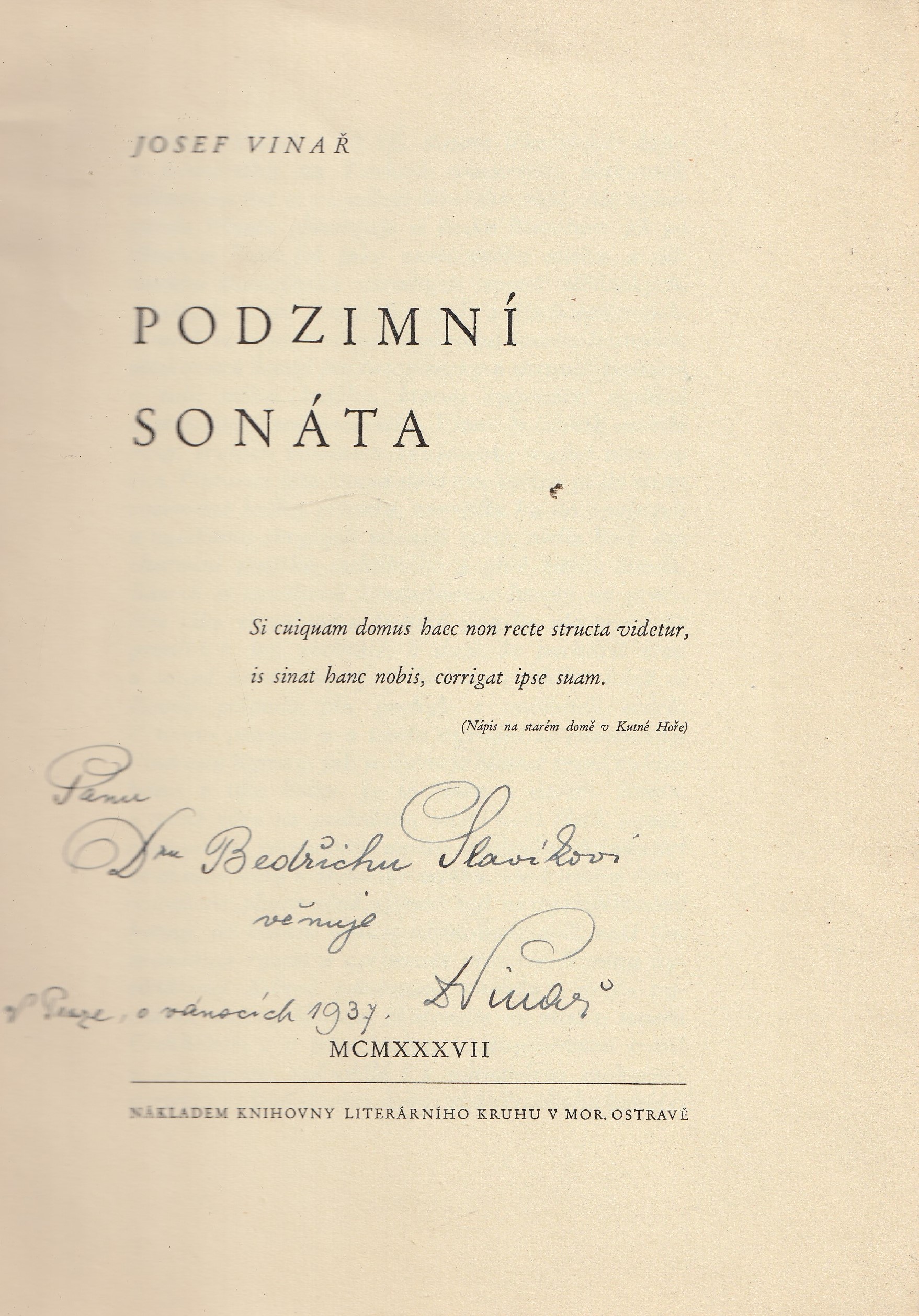 | Pozn.: | A 6, váz., věnování, datum, podpis |