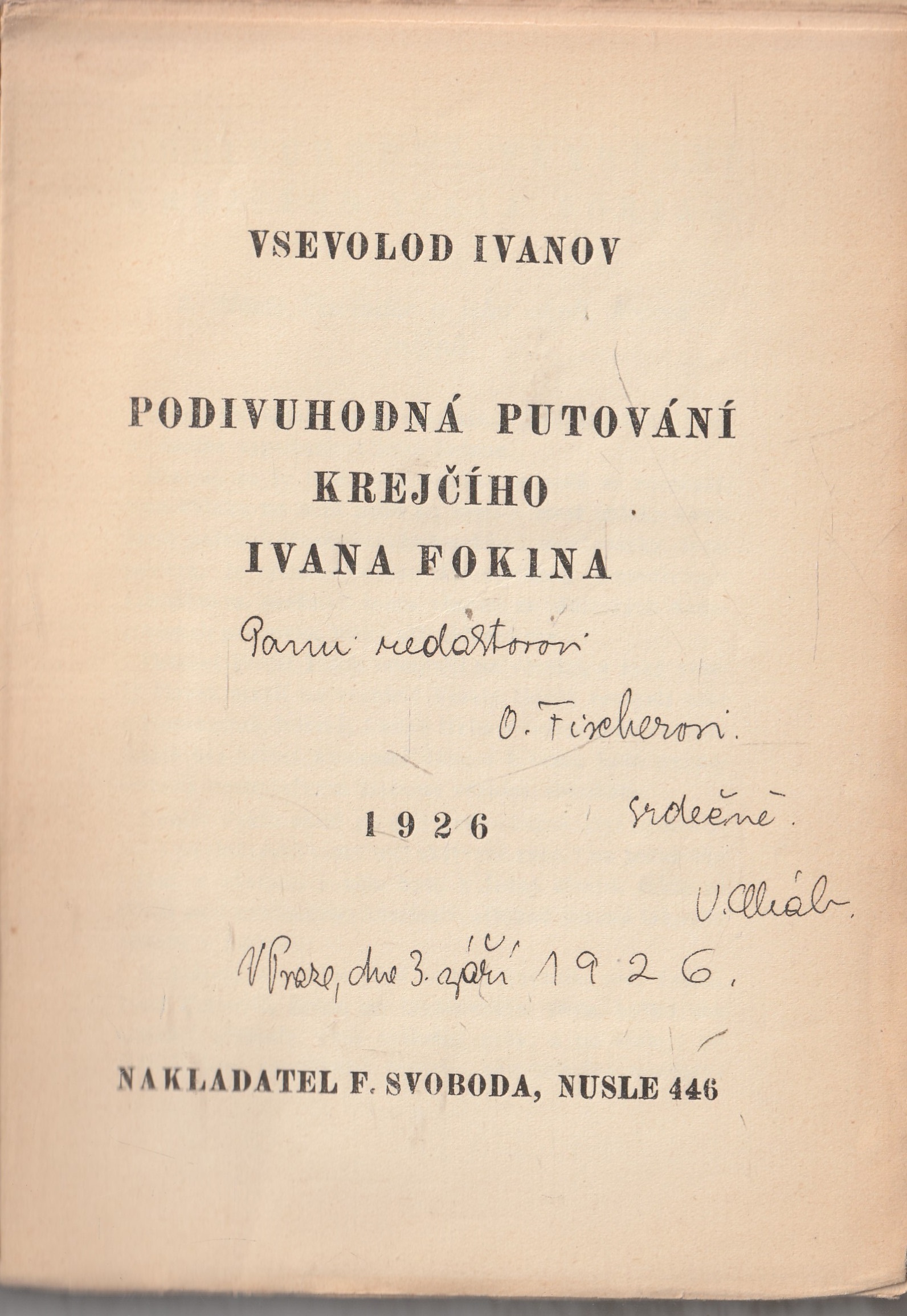 | Pozn.: | přev., ob. veváz., věnování E.Vachkovi + jeho podpis |