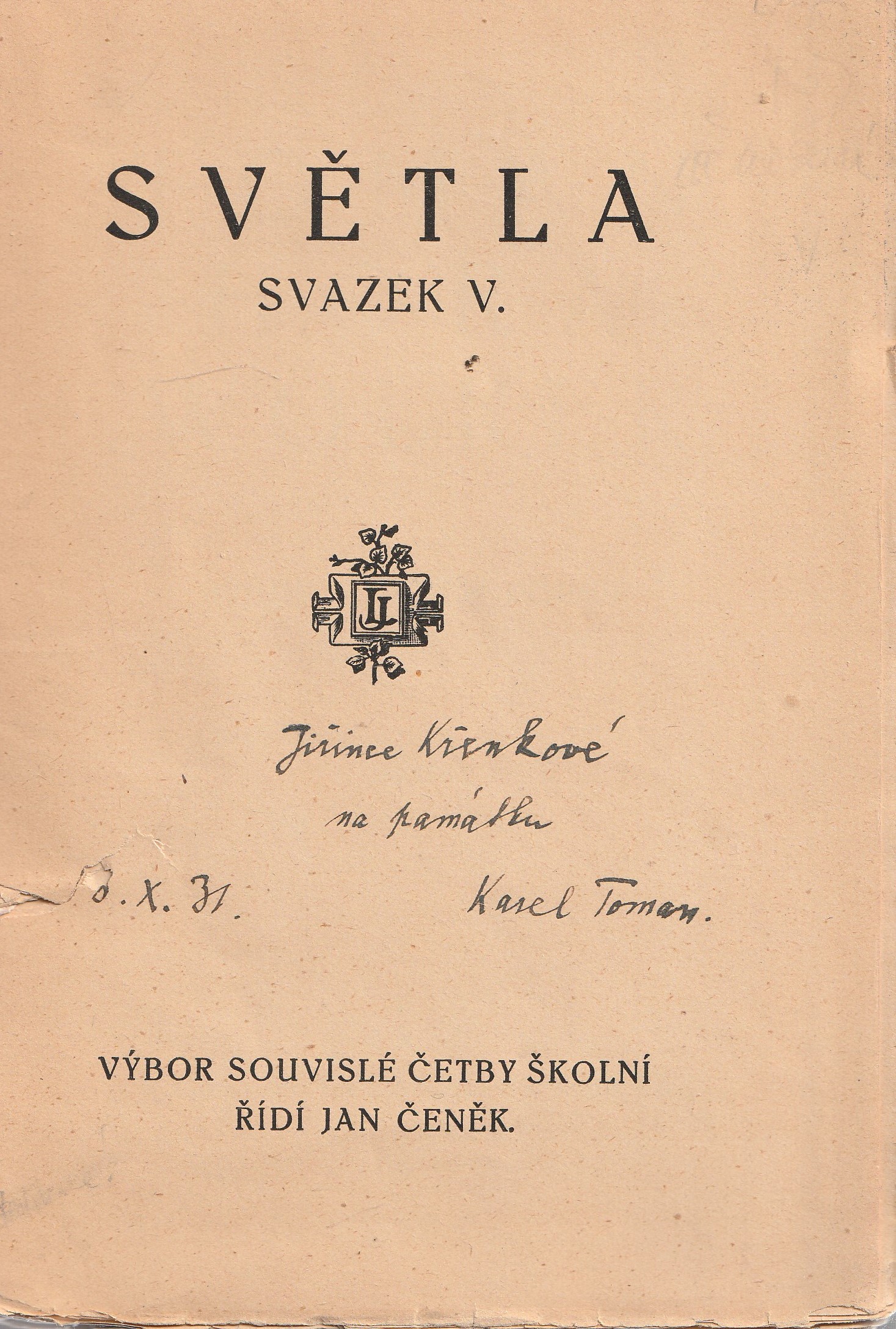 | Pozn.: | věnování, orig. brož. |